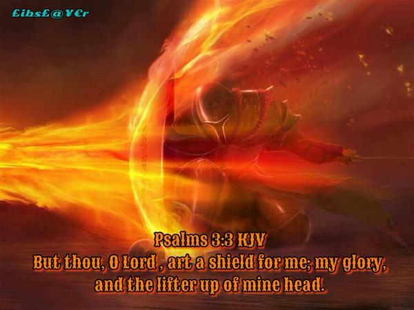 Oh, I love Psalm 3 because it's like I can see myself in the pit, in the trenches, in the battlefield crying out to God and I am reminded that HE IS a SHIELD around me. He lifts my head when I am downcast and feel like I am losing my courage.
